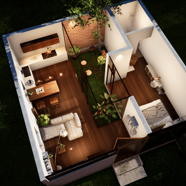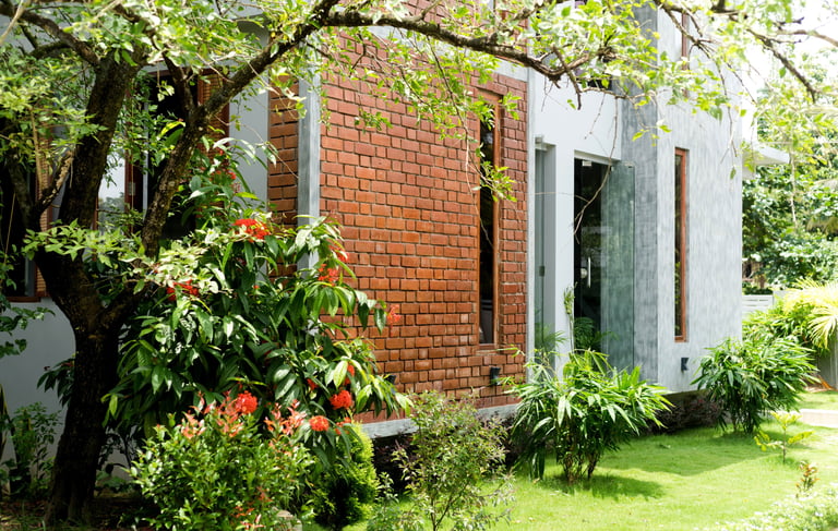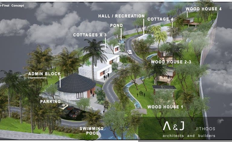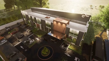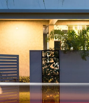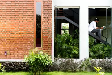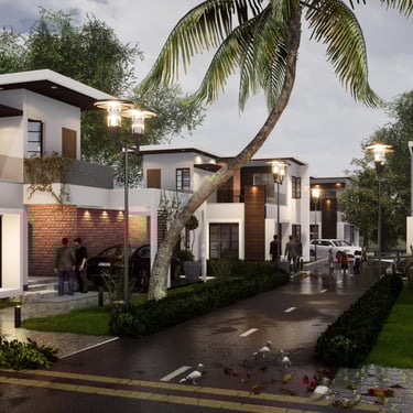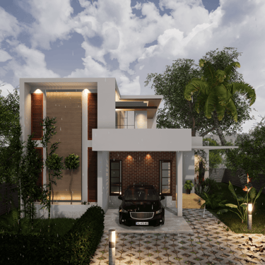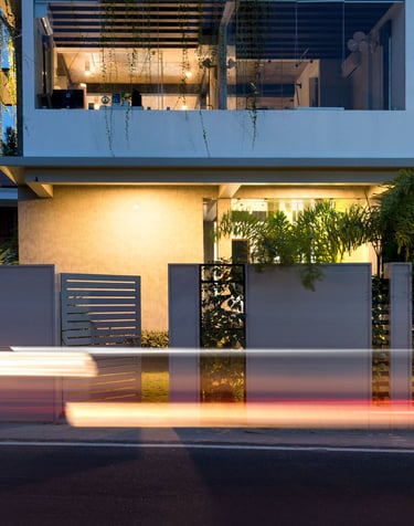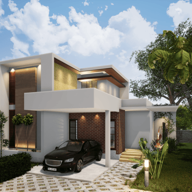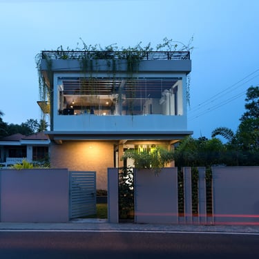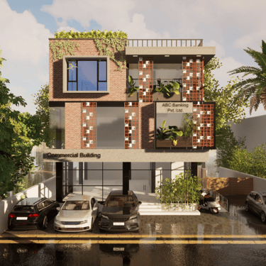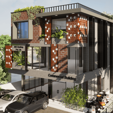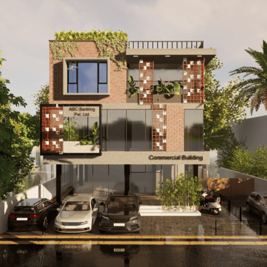 This 3-story, 2,600 sqft mixed-use building blends residential flats with commercial spaces. The ground floor features retail or office areas, while the upper floors offer private, well-designed flats. With multiple parking areas for the occupants, this building was built on a 4-cent plot. The gallery shows different concepts for the facade design.