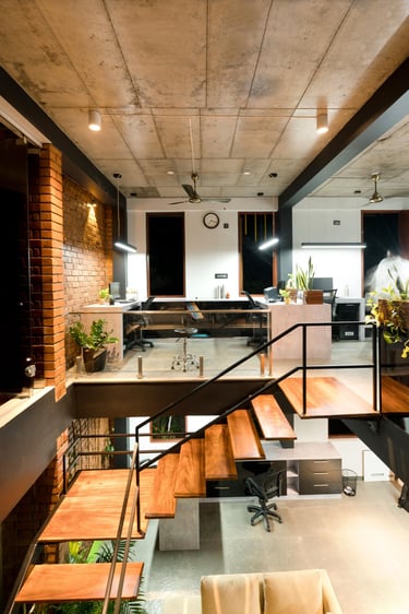 Conceived as a new office space for our practice, the A&J Office building was designed in 2019. With a total area of 1800 sqft, it is an office space based on sustainability. There are iconic windows and a floating stair which are the highlights of the interior.