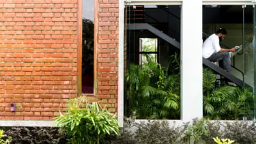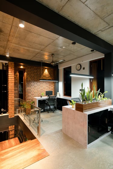The material palette was inspired by the brutalist movement, thereby focussing on using materials like brick, and concrete as it is. An open and minimal design language creates a very positive work environment with incorporated greenery and abundant light and ventilation.