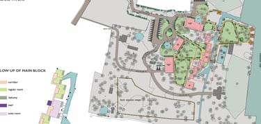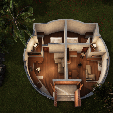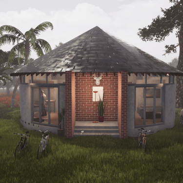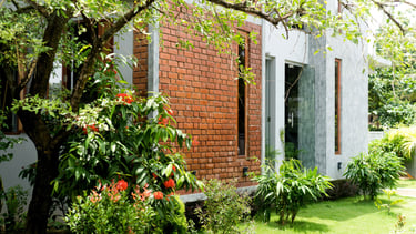 The building has net-zero energy consumption, due to the solar panels, which doubles as a roof for part of the terrace. There is no requirement for artificial lighting or cooling, even in the hot and humid conditions of Alleppey. The cool natural stone flooring also adds to this climate-sensitive design. The building is also surrounded by very big shady trees, which reduce radiant heat gain.